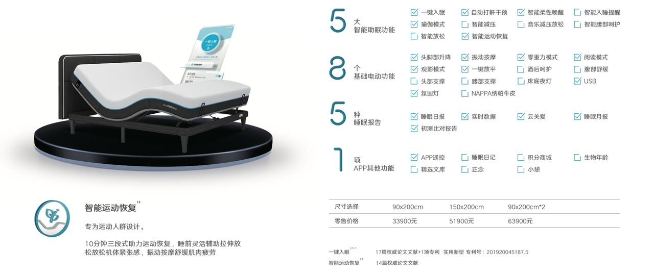 功效:一键入眠+智能运动恢复